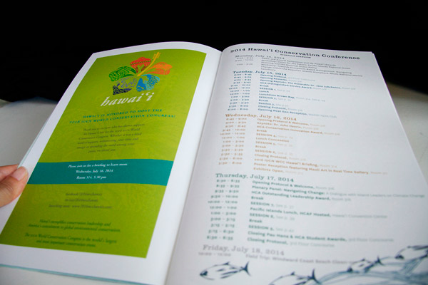會徽是一朵夏威夷州花木槿花的形象,五片花瓣分別代表了夏威夷群島的不同生態(tài)景觀,紅色花瓣代表夏威夷的火山,橙色花瓣是夏威夷獨(dú)有鳥種鐮嘴管舌雀(ʻIʻiwi)的形象,藍(lán)色花瓣代表夏威夷的海洋,紫色花瓣是航海獨(dú)木舟形象,象征當(dāng)?shù)氐淖迦喝诤?,綠色花瓣象征自然保護(hù)和食品安全。這個五顏六色的大會標(biāo)識代表了夏威夷的獨(dú)特環(huán)境和世界自然保護(hù)聯(lián)盟(IUCN)的使命。